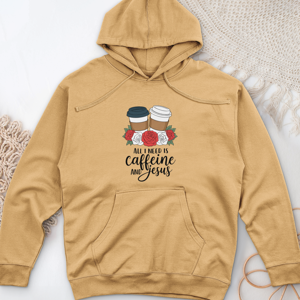 All I Need Is Jesus and Caffeine Midweight Hooded Sweatshirt