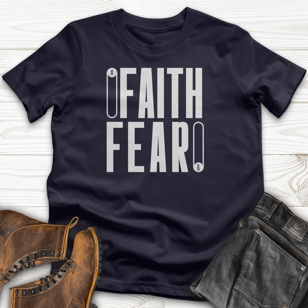 # Faith Fear T-Shirt Wear your conviction with confidence. This thoughtfully designed tee celebrates the power of faith over fear, serving as a daily reminder that courage comes from within. Perfect for those seeking spiritual strength or meaningful self-expression, it combines comfort with purpose. Whether you're on a personal journey of growth or simply want to inspire others, this shirt speaks volumes without saying much at all. Made for everyday wear, it's a wardrobe essential that resonates with your values.