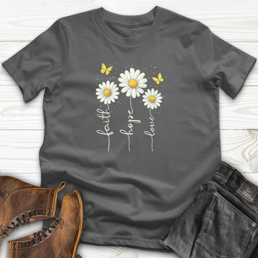 Embrace positivity and inspiration with the Faith Hope Love T-Shirt. Crafted for comfort, this shirt gently reminds you to carry faith, hope, and love with you every day. Its soft fabric and timeless design make it perfect for any occasion, helping you share a message of encouragement and strength wherever you go.