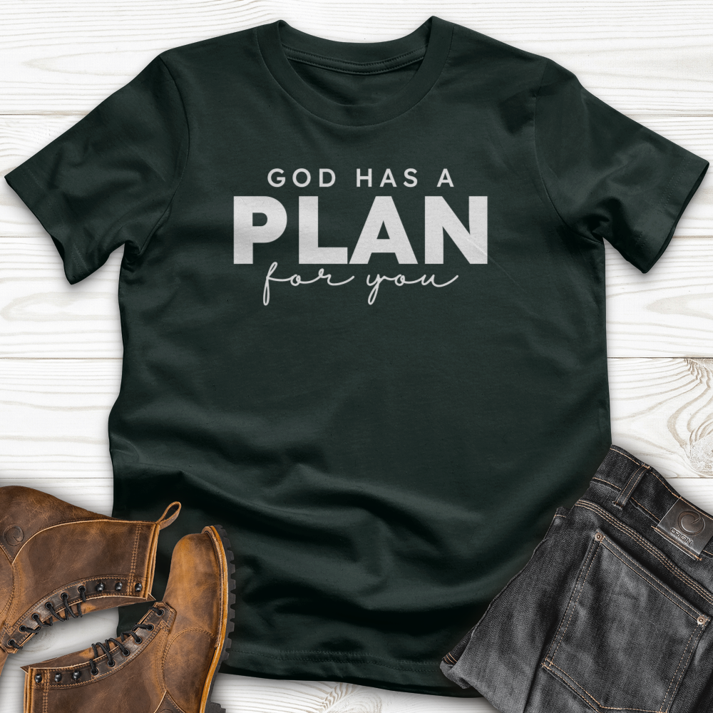 God Has a Plan for You T-Shirt Wear your faith with confidence in this uplifting graphic tee. Featuring an inspiring message that reminds you of hope and purpose, this comfortable shirt is perfect for daily wear or sharing your beliefs with others. Made from quality fabric, it's designed to feel soft against your skin while making a meaningful statement. Whether you're seeking encouragement or want to inspire those around you, this tee serves as a wearable reminder that you're never alone on your journey.