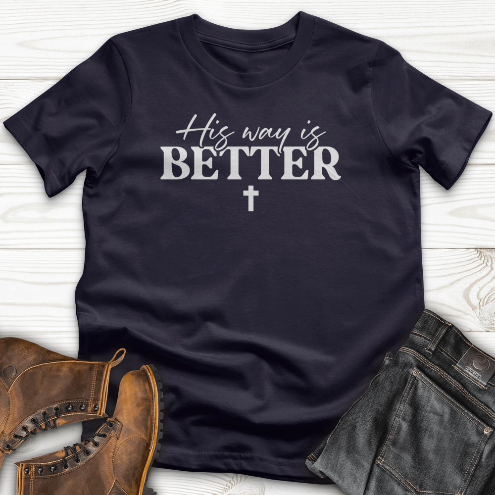 His Way Is Better T-Shirt Wear your faith with confidence in this meaningful tee. Crafted from soft, comfortable fabric, it's perfect for everyday wear while expressing what matters most to you. The bold message serves as a daily reminder of your beliefs and values. Whether you're heading to church, spending time with loved ones, or simply going about your day, this shirt lets your conviction shine through. A versatile wardrobe essential that combines comfort with purpose.