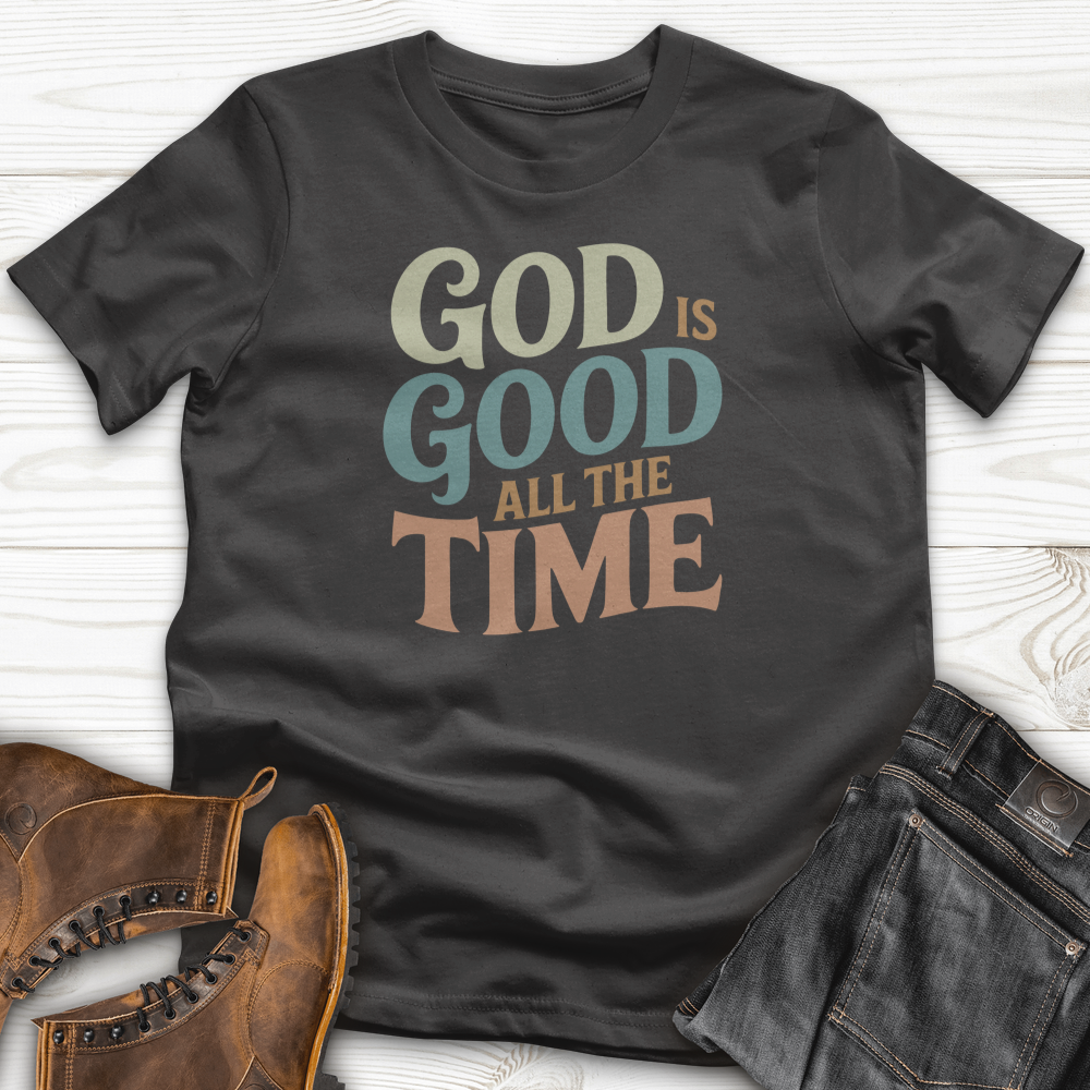 God Is Good All the Time T-Shirt Wear your faith with pride in this meaningful tee that celebrates unwavering belief and gratitude. Crafted from soft, comfortable fabric, this shirt is perfect for daily wear, whether you're heading to church, spending time with loved ones, or simply living out your values. The bold, clear message serves as a personal reminder and conversation starter about what matters most. Available in versatile colors that pair easily with any wardrobe, this tee offers both comfort and purpose. A thoughtful choice for yourself or as a gift for someone whose faith guides their journey.