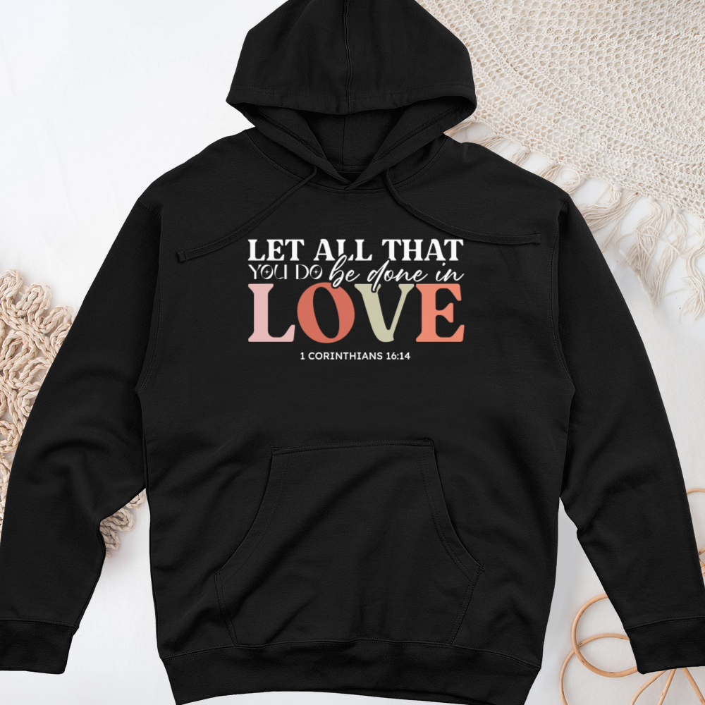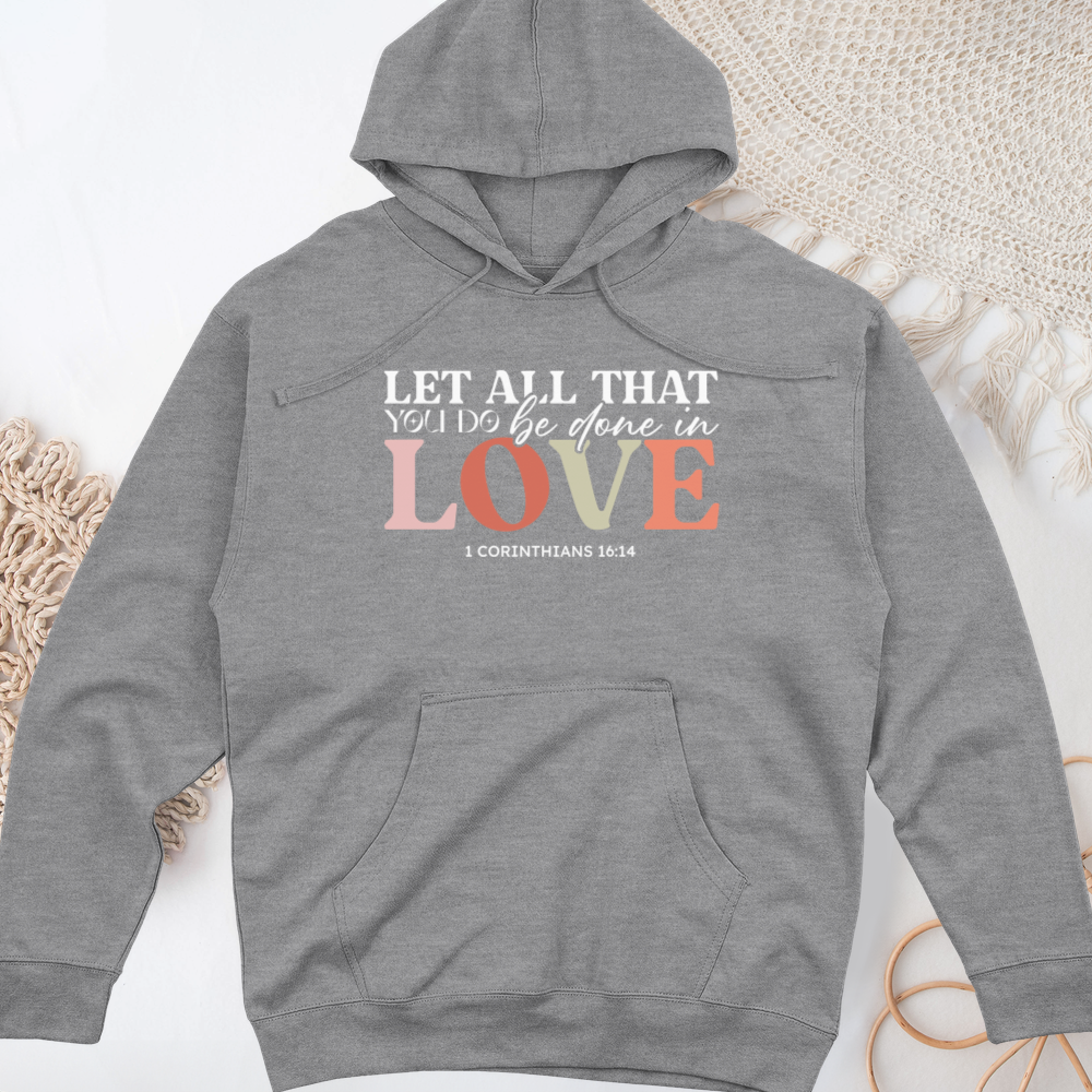 Let All That You Do Be Done in Love Midweight Hooded Sweatshirt