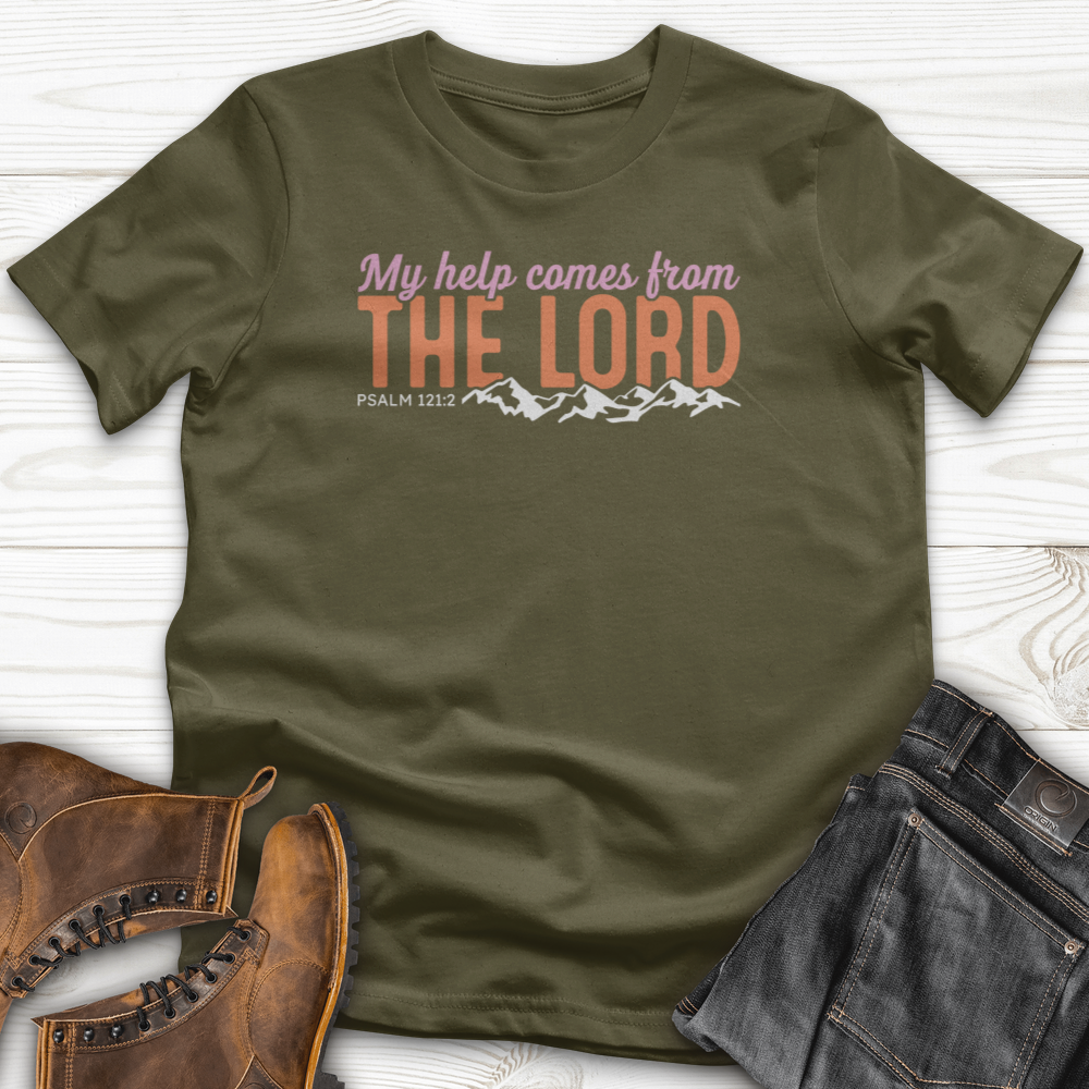 My Help Comes From The Lord T-Shirt Wear your faith with confidence in this meaningful tee. Crafted from soft, comfortable fabric, this shirt features an inspiring message that reminds you of your spiritual strength every day. Perfect for daily wear, casual outings, or as a gift for someone who draws comfort from their beliefs. The classic design pairs easily with jeans, shorts, or your favorite bottoms, making it a versatile addition to any wardrobe. Let your shirt be a gentle declaration of where your trust lies.