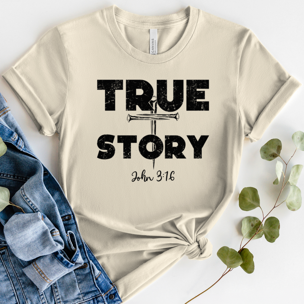 This shirt says it all—True Story. Not a myth. Not a metaphor. The life, death, and resurrection of Jesus Christ is the greatest truth the world has ever known.