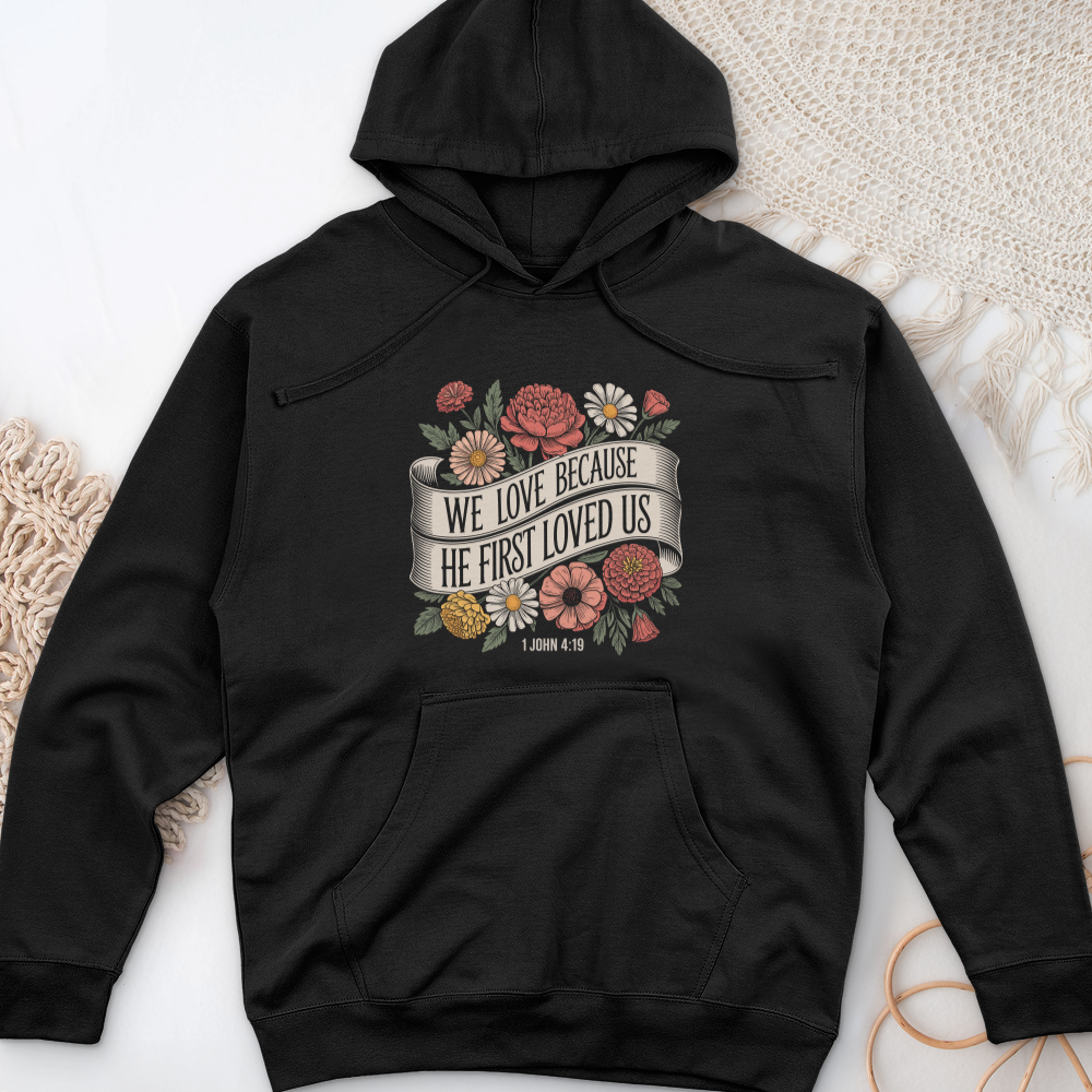 We Love Because He First Loved Us Midweight Hooded Sweatshirt